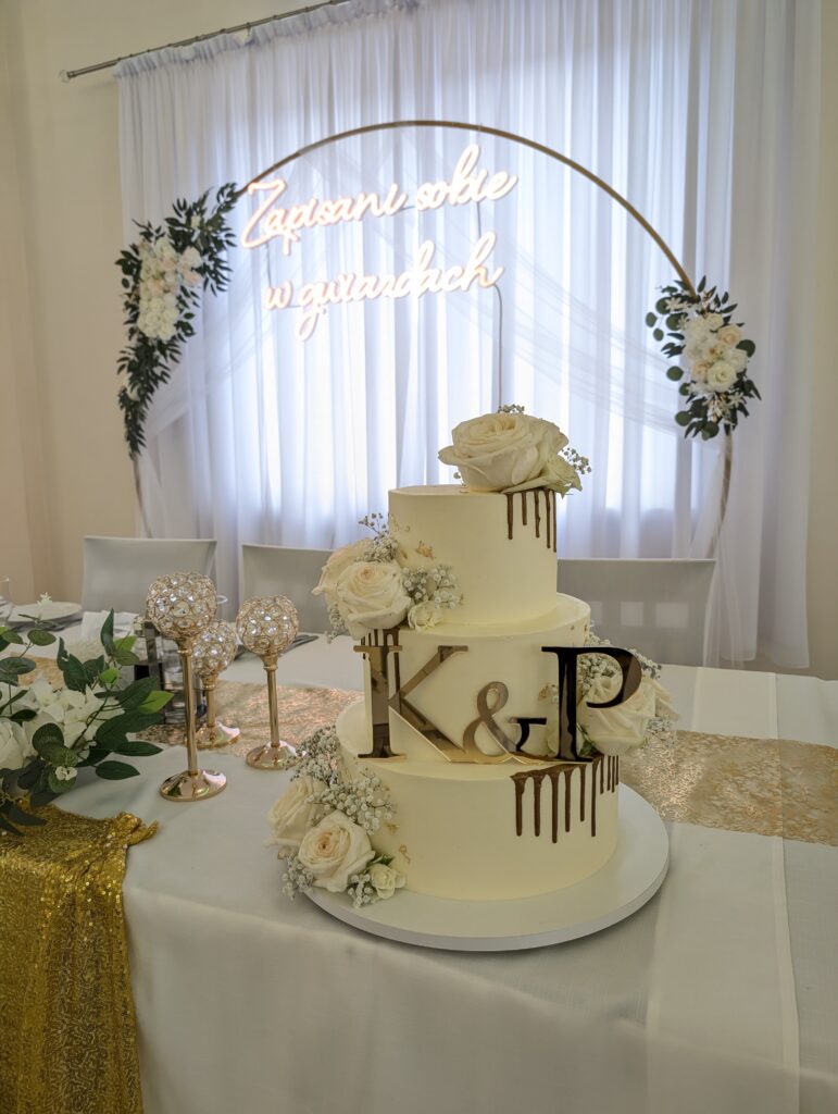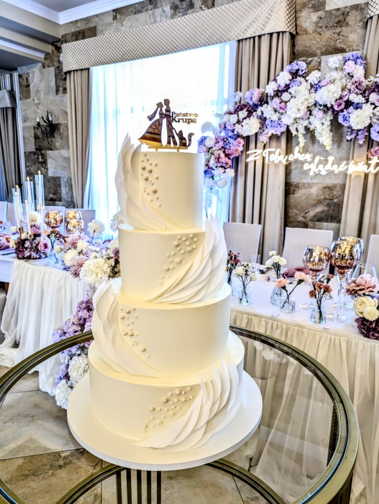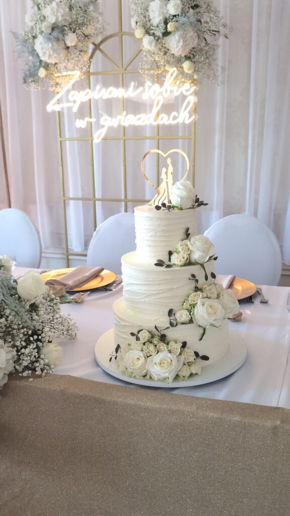 Tort weselny to jedna z obowiązkowych słodkich atrakcji weselnego przyjęcia. Jest to Wasz niepowtarzalny dzień więc sam tort musi być perfekcyjny i dopracowany w każdym calu. W zależności od tego ile przyjdzie gości na Wasze wesele możemy zrobić torty jedno-, dwu-, trzy-, cztero-, a nawet pięcio piętrowe na ponad 250 porcji 😉
